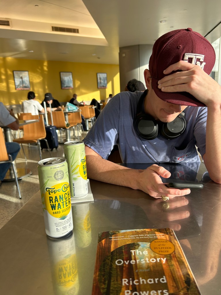 This weekend we were back in Texas for a wedding! We flew into Austin on Wednesday afternoon, and I worked remotely Thursday and Friday while spending time with Jason’s family. Booking last minute flights to Austin during F1 weekend apparently wasn’t cheap so we had a connecting flight both ways… which meant more time for airport drinking and airport reading: