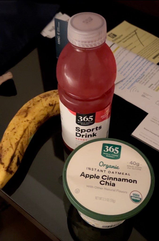For breakfast I had oatmeal (best pre run food but I never have time to make it) and a banana that I picked up at Whole Foods the night before!