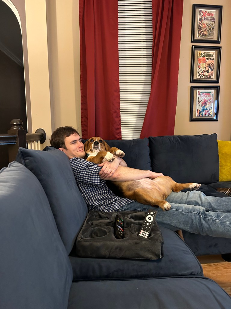 Our guests brought their own food to the party as well and we stuffed our faces and enjoyed each other’s company. Mera enjoyed the company too (after barking at them relentlessly for 40 minutes). She especially lightened up when Jason decided to let her on the couch for the special occasion 🙂