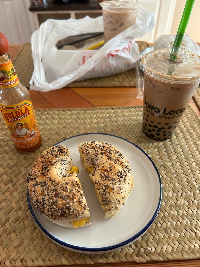 Speaking of that run, it was my first real “long run” of my marathon training season! I forgot how hungry I get after those. We had no food in the house so I took an early “lunch” break and went out to get us breakfast and boba 🙂