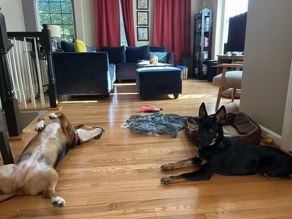 Mera was in heaven the other day with her new best friend! We watched my coworker’s brand new puppy, Freya, while she had to attend a conference all day. Mera was very playful as always, and not at all a bully like she normally is, even to bigger, older dogs! It was so sweet to see her being so gentle 🙂