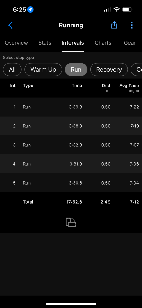 I guess I was just trying to impress him or something! 😉 He didn’t run with me, but just him watching me run around the track was motivation enough to empty the tank haha.