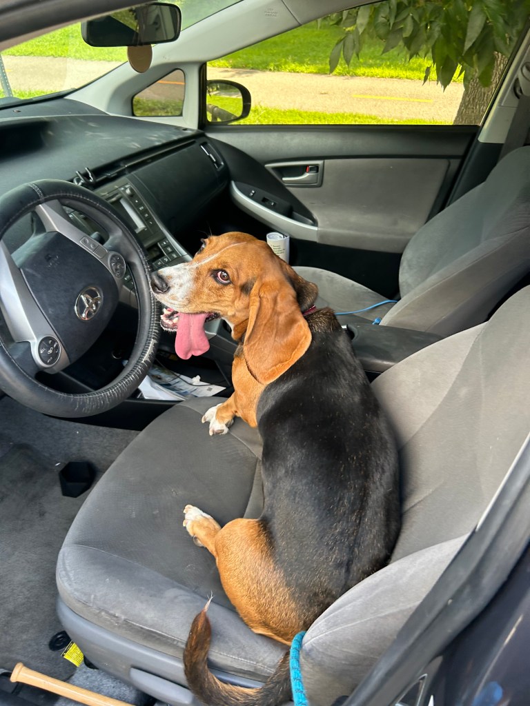 I also decided to push her limits the other day with a 1.5 mile walk. I was originally going to take her 2 miles, but it quickly became clear to me that she was 100% over it :D. I stopped at the first bench on our path to give her water, and at every bench from there on out she stopped and pouted until I gave her more! This is her at the end of the walk after I opened my car door (she jumped right in even though I was trying to put her in the back).